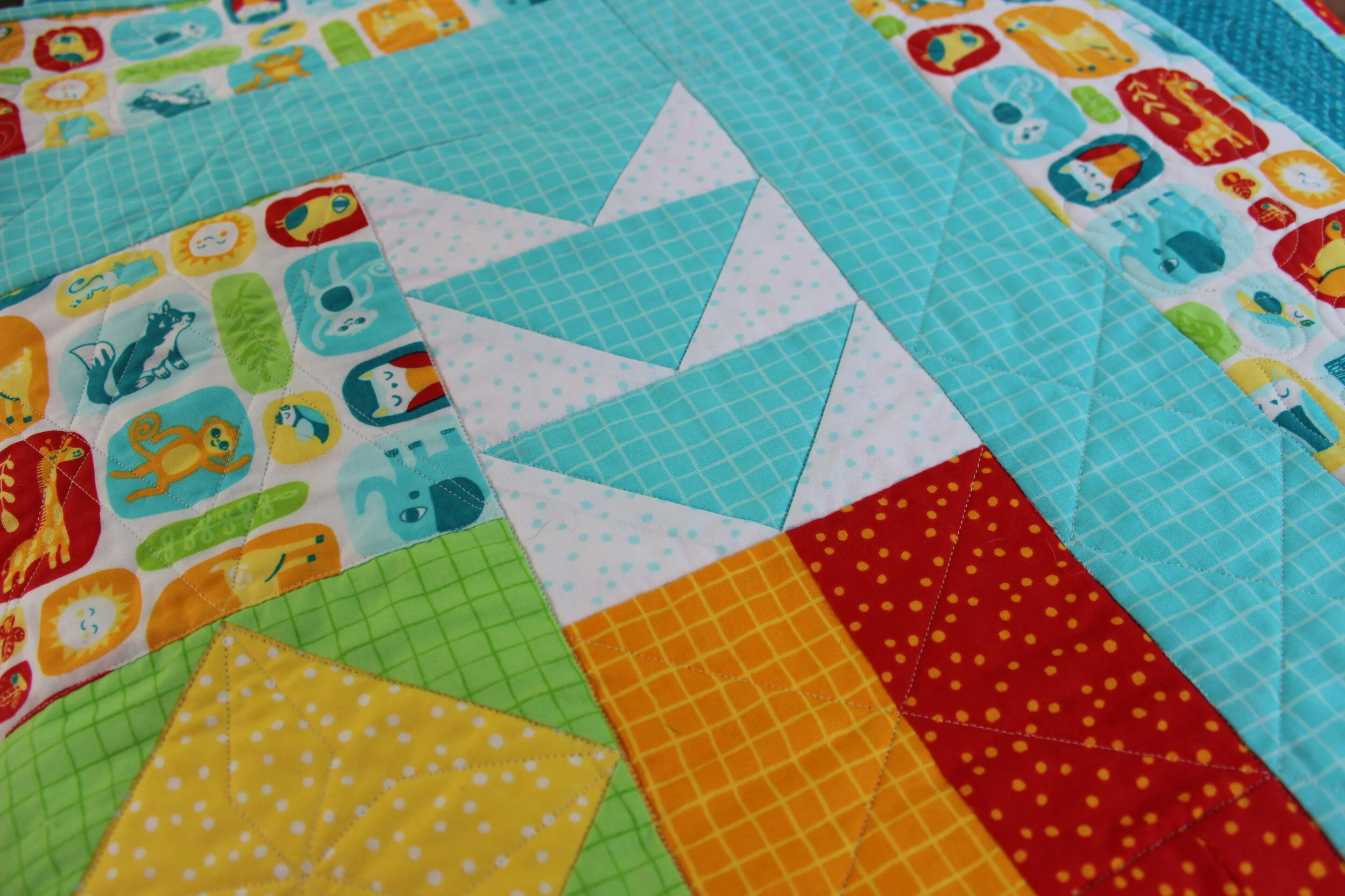 Binding encases the edges of the quilt and is the final step in finishing a quilt. Binding options include One Side (allowing owner to finish by hand) or Complete (machine stitched, as in picture).